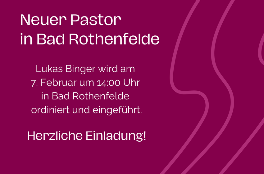 Ab Februar wird Bad Rothenfelde einen neuen Pastor bekommen: Lukas Binger, der Ehemann unseres Pastors in Bad Laer und Glandorf, Simon Binger. Wir freuen uns sehr auf ein noch jüngeres Team in ...