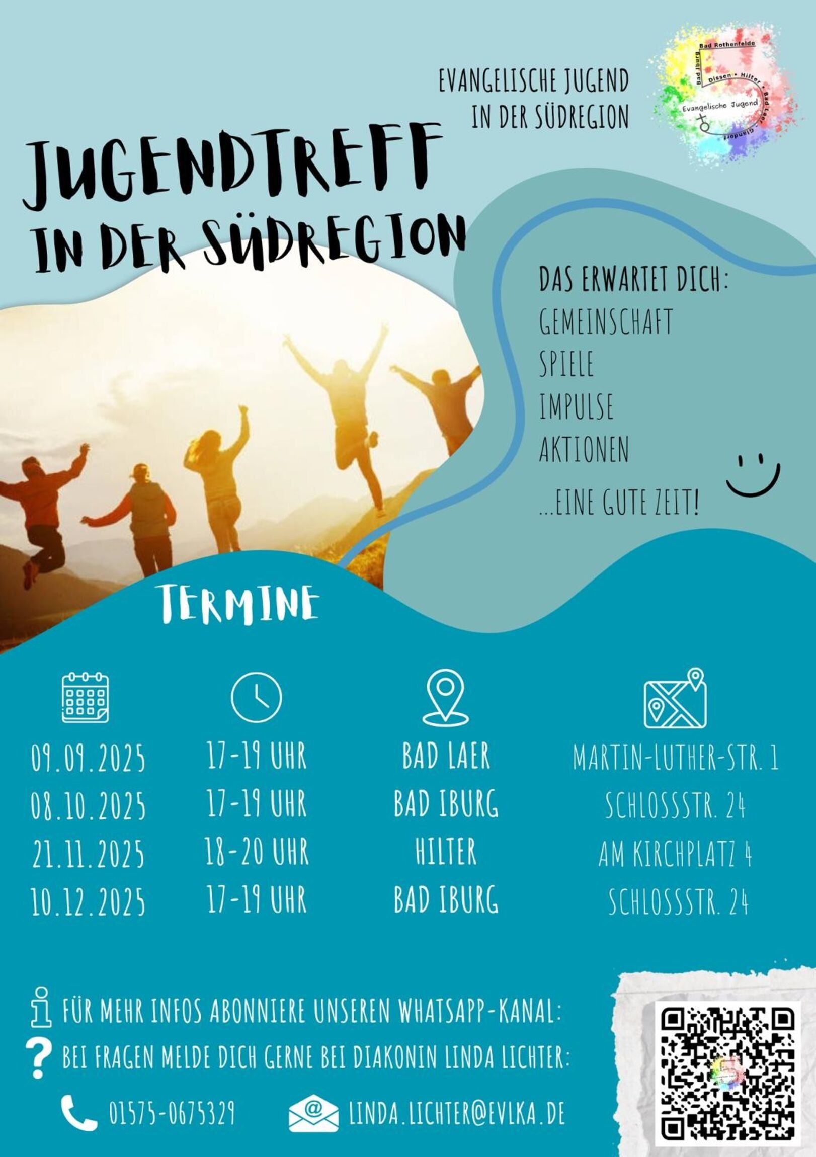 Regelmäßig treffen wir uns mit Jugendlichen in unserer Region und haben gemeinsam eine gute Zeit. Kommt gerne vorbei und bringt Freunde mit. Termine dazu findet ihr auf dem Plakat und in den Schaukästen.