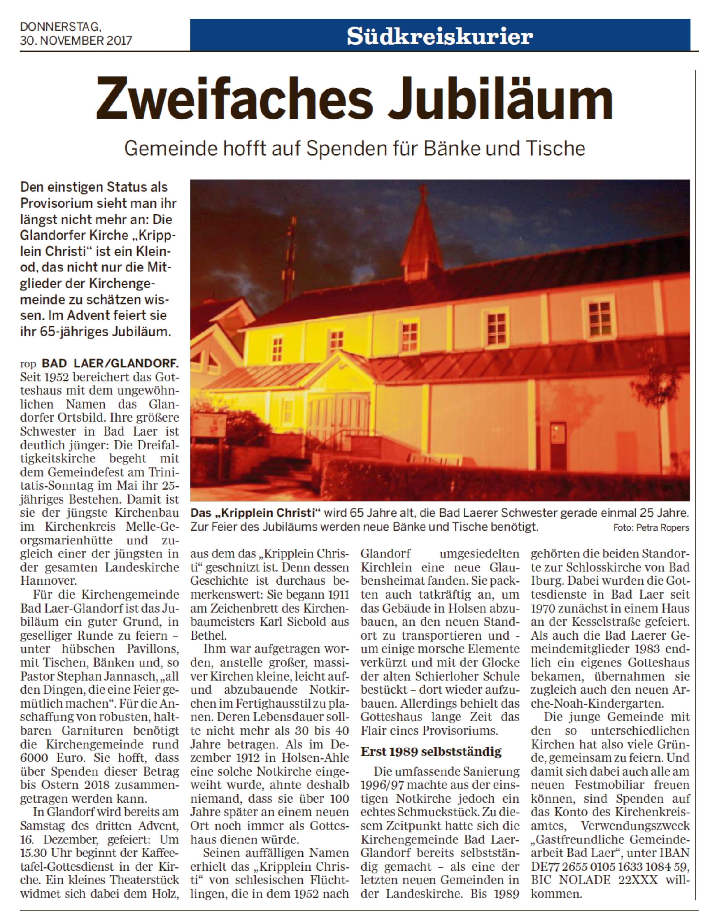 Alle Spender:innen haben uns geholfen neue Saiten aufziehen und das Kripplein wieder und weiter zu einem ganz besonderen Ort in Glandorf machen: Nicht allein für die evangelische Gemeinde, sondern für alle Glandorfer, die guten Klang mögen: Gruppen, Vereine, Chöre und Konzerte, die diesen einzigartigen Raum mit Leben füllen. Musik verbindet!