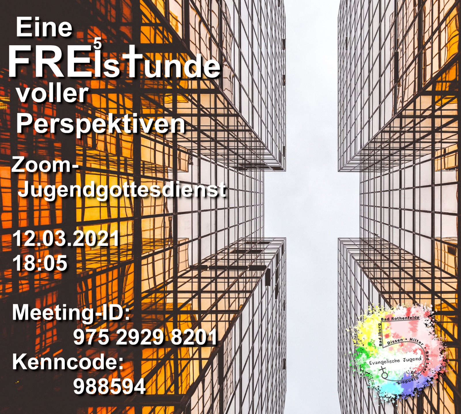 Unter dem Thema "Perspektiven" lädt die Evangelische Jugend der Südregion am 12. März wieder zu einer FREIstunde ein. Wegen dem Fortbestand der Pandemie wird dieser Jugendgottesdienst digital über Zoom stattfinden.