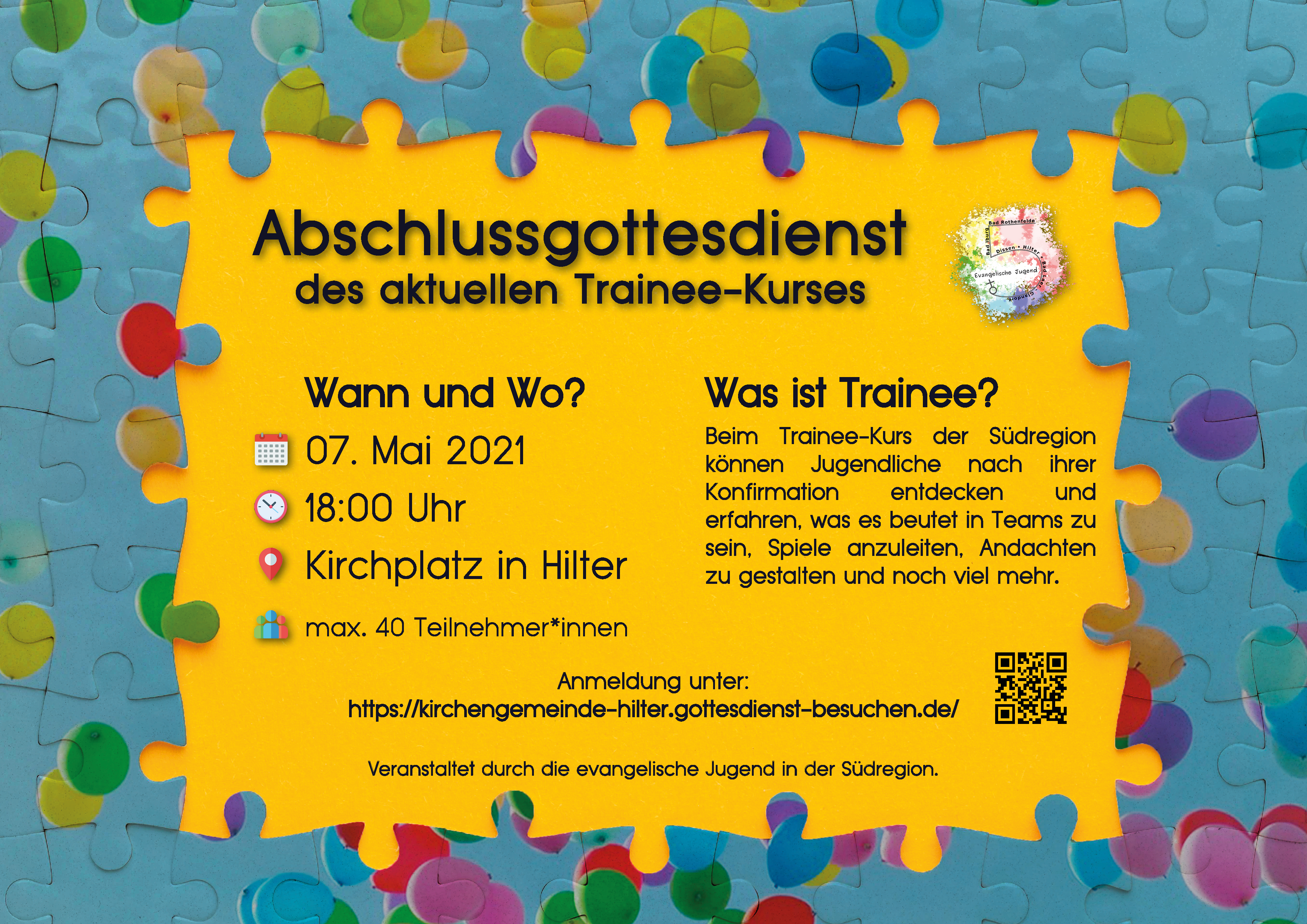 Nach einem höchst ungewöhnlichen Jahr geht diesen Freitag um 18 Uhr der aktuelle Trainee-Kurs mit einem Abendgottesdienst in Hilter feierlich zu Ende. Wer am Gottesdienst teilnehmen möchte, kann sich hier anmelden.
